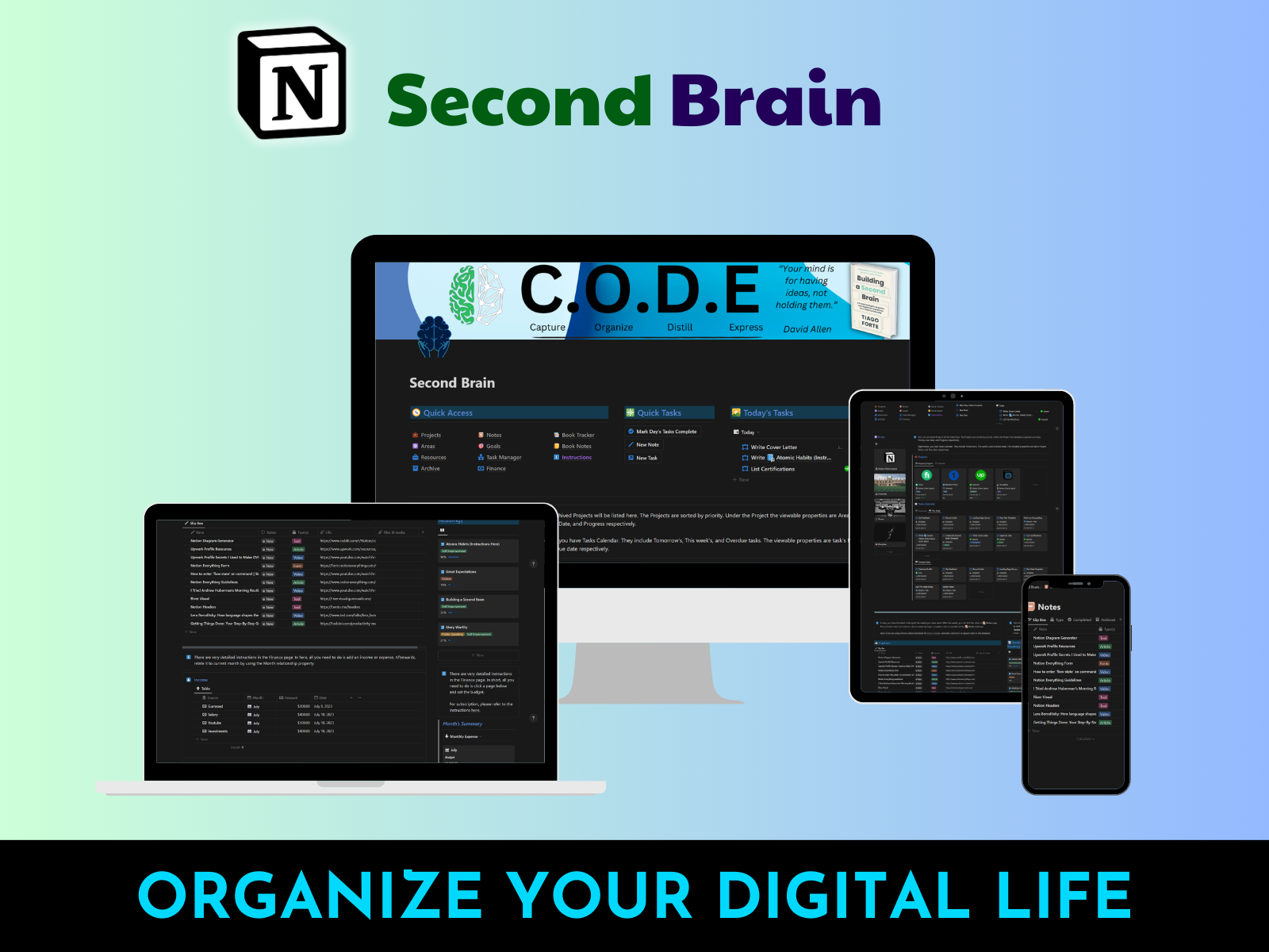 The Second Brain Template is a powerful tool designed to revolutionize the way you organize and access your digital life. With this comprehensive template, you can effortlessly capture, categorize, and retrieve all your ideas, notes, projects, and resources in one centralized hub. Say goodbye to scattered thoughts and information overload. The Second Brain Template empowers you to create a digital sanctuary for your knowledge, enabling you to easily connect dots, discover insights, and spark new ideas. Effortlessly navigate through your projects, manage tasks, track progress, and stay focused on what matters most. Whether you're a creative professional, entrepreneur, student, or anyone seeking to boost productivity and unlock your true potential, the Second Brain Template provides the structure and organization you need to thrive in the digital age. Streamline your workflows, unleash your creativity, and reclaim control over your digital world. Get the Second Brain Template today and take your productivity to new heights. Your digital transformation starts here. Get ready to harness the power of your second brain! Frequently Asked Questions (FAQ) 1. What is a Second Brain? A Second Brain is a concept and methodology for organizing and managing your digital information, ideas, and resources. It acts as an extension of your mind, allowing you to capture, store, and retrieve valuable knowledge and insights whenever you need them. 2. How can the Second Brain Template benefit me? The Second Brain Template offers a structured framework to help you create and maintain your own second brain. It provides a centralized hub where you can effortlessly organize your ideas, notes, projects, and resources. This enables you to streamline your workflows, boost productivity, and unlock your creative potential. 3. Is the Second Brain Template customizable? Absolutely! The Second Brain Template is designed to be flexible and adaptable to your specific needs. You can easily customize it by adding or modifying sections, rearranging elements, and tailoring it to fit your unique workflow and preferences. 4. Can I use the Second Brain Template on any device? Yes, the Second Brain Template is built using Notion, a powerful cross-platform app available on web browsers, desktops, and mobile devices. This means you can access and use your second brain seamlessly across multiple devices, ensuring you have your valuable information at your fingertips, wherever you go. 5. How will the Second Brain Template help me stay organized? The Second Brain Template provides a structured framework with dedicated sections for projects, areas, resources, finance, books, notes, and more. By utilizing these sections, you can easily categorize and retrieve information, track progress, and maintain an organized digital workspace. 6. Can I collaborate with others using the Second Brain Template? The current version of the Second Brain Template is designed for individual use. However, we have plans to introduce a collaborative version in the future to accommodate team workflows. Stay tuned for updates on more collaborative features. 7. Do I need prior experience with Notion to use the Second Brain Template? While prior experience with Notion can be beneficial, the Second Brain Template is designed to be user-friendly and accessible to users of all levels. Even if you're new to Notion, you'll find the template easy to navigate and customize according to your needs. 8. Is customer support available for the Second Brain Template? Yes, as a valued user, you'll have access to customer support for any questions, concerns, or assistance you may need while using the Second Brain Template. We're here to ensure you have a smooth and successful experience with your second brain journey. Don't see your question here? Feel free to reach out via email or DM me via Twitter and I'll be happy to assist you!